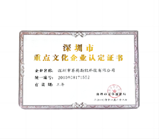 深圳市重點文化企業認定證書