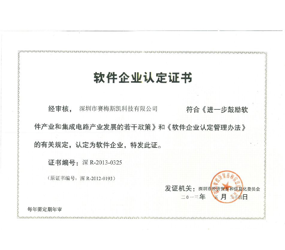 軟件企業認定證書
