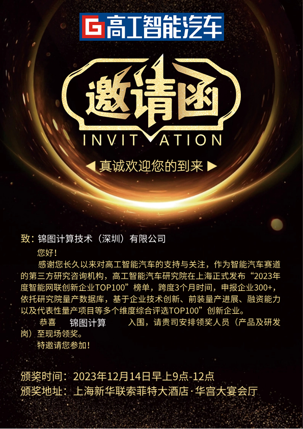 The High Tech Intelligent Automotive Research Institute officially released the "Top 100 Intelligent Connected Innovation Enterprises in 2023" list in Shanghai on December 14, 2023. Spanning a period of 3 months, we have applied for over 300 companies and, relying on the research institute's mass production database, comprehensively selected the top 100 innovative enterprises based on multiple dimensions such as enterprise technological innovation, progress in front-end production, financing capabilities, and representative mass production projects. Jintu Computing has successfully been shortlisted for the Top 100 Enterprises list.